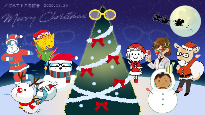 本日はクリスマス!!大きな大きなモミの木には光り輝くメガネが飾られ、その麓にはメガネキャラ同好会メンバーが集いました!┌◯◯┐!
