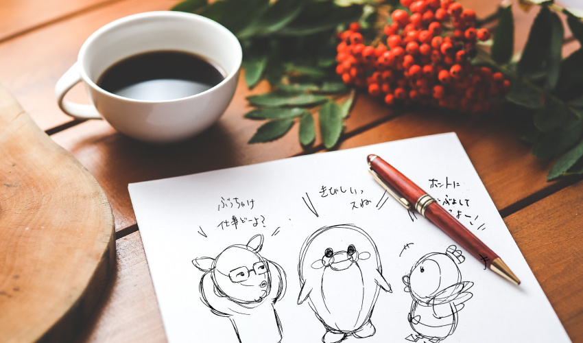 こちらは作成前のラフ画像です。初ペギーさんを書きました!丸いフォルムで可愛いですね╭( ・B・)و