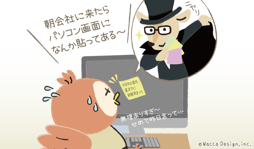 (」°ロ°)」「今日中の案件、昼までに納期早まった」 by怪盗わっかさん