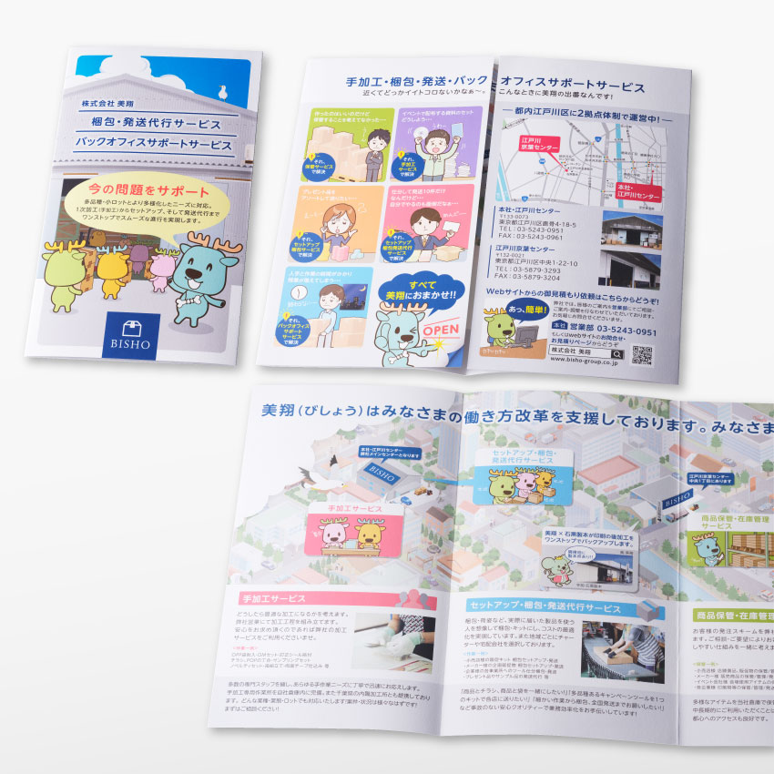 今回のクライアントである株式会社美翔は、東京都江戸川区に2つの拠点を構える梱包・発送を主な事業とした従業員30名弱の会社です。顧客から預った製品や商品、販促物などを指定通りに梱包・発送することをメインの業務とする中で、いかに付加価値の高いサービスにシフトしていくかが常に課題としてあります。以前から様々な要望に応えて内職などの手加工や、アッセンブリ、在庫管理に至るまでの一貫した対応力は高い評価を得ているものの、さらに個々の顧客に対する満足や効用を提供するバックオフィスサポートを行うサービス業へと足を踏み入れました。こういったサービス展開には、それにふさわしいスタイルや会社の姿を見せていく必要があり、それをわかりやすく伝えることが他社への差別化に繋がるというわけです。