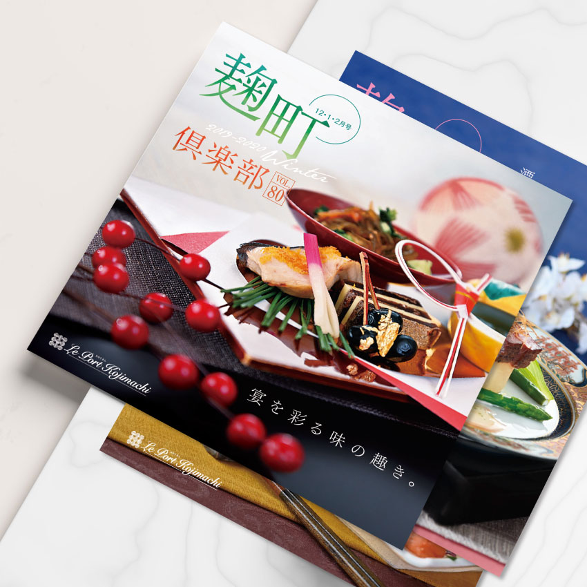 当初のきっかけは季節毎に発行している各レストランのコース料理を紹介するパンフレットを制作してほしいというものでした。こういったパンフレットはどこのホテルでも大抵発行しており、今回の案件で特に変わった何かが要求されていたわけではありませんが、それでもデザインの根幹となるポリシーが変われば、見る人に与える印象も結構変わってくるもの。まずはターゲット層に合ったトーン&マナーを一年かけてイチから構築していくようなつもりで紙面のデザインと、主役であるコース料理の撮影には最大限こだわろうと胸に秘めて臨んだのでした。