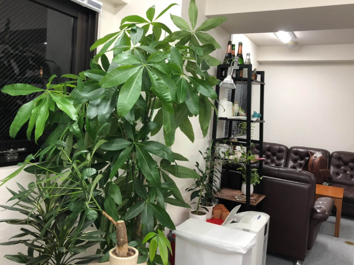 社内の中心には、社長自慢の植物スペースを作り、訪れたお客様を癒してくれます。ぜひ一度遊びに来てくださいね。