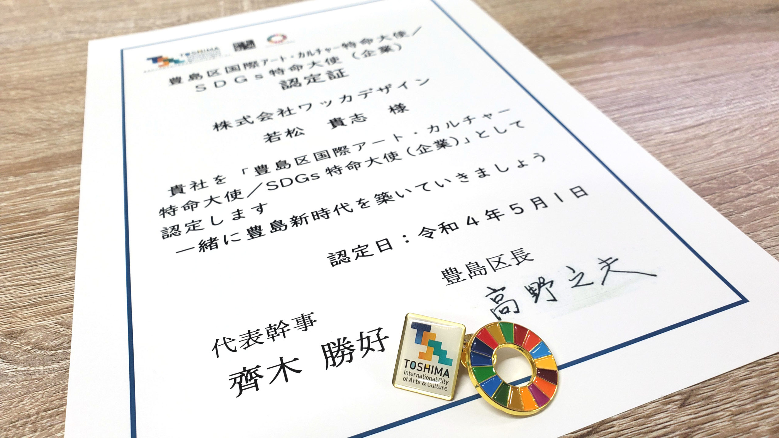 この度豊島区より「豊島区国際アート・カルチャー特命大使/SDGs特命大使(企業)」に認定されました!先日製品化した紙ファイルはもちろん、従業員の柔軟な働き方を実現していることなどワッカデザインが複数のSDGs項目に該当していることを評価いただいています。