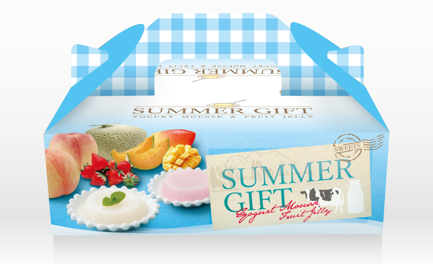 フルーツと口当たりの良さにこだわったゼリーやムースを製造するスイーツメーカーのギフトボックスを手がけました。サマーギフト向けだったこともあり、爽やかさとフルーティーさを素直に感じさせ、上質感あふれるデザインをご提案。デザインコンペの案件だったのですが、受注に結びつけることができました。