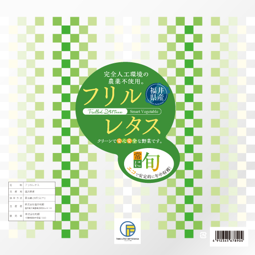 スーパーなど店頭で販売されるレタス製品の包装パッケージデザインを手がけました。女性をメインターゲットとした上で世代を問わず親しまれるようにというご要望に対し、モダンな和の雰囲気を基調としつつも高級感とフレッシュ感のあるデザインをご提案。デザインコンペの案件だったのですが、受注に結びつけることができました。