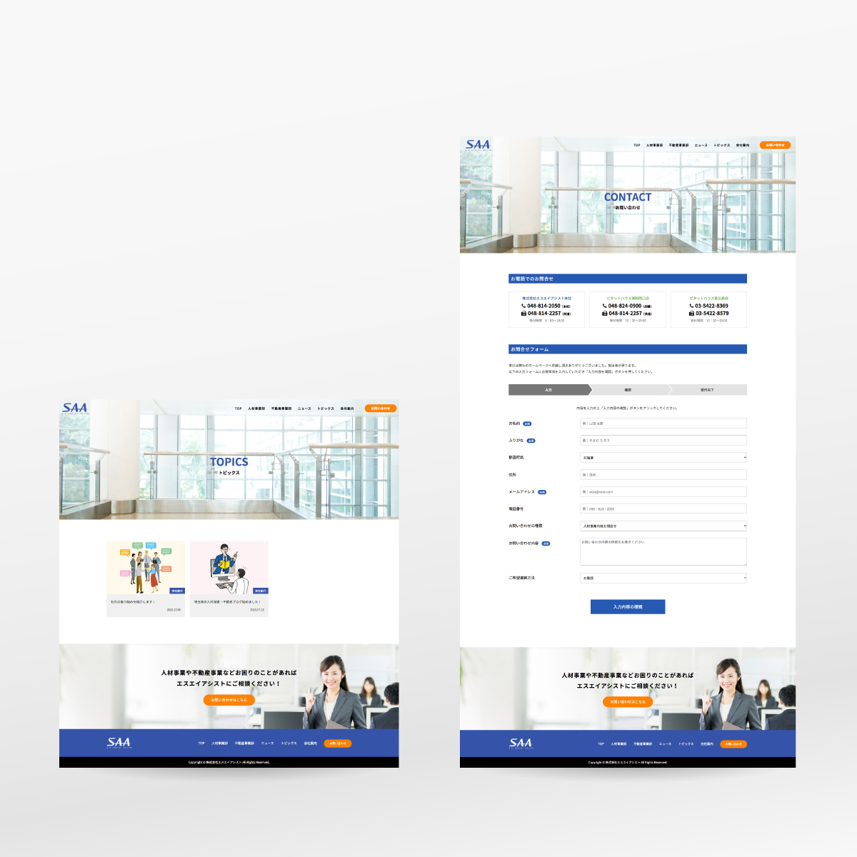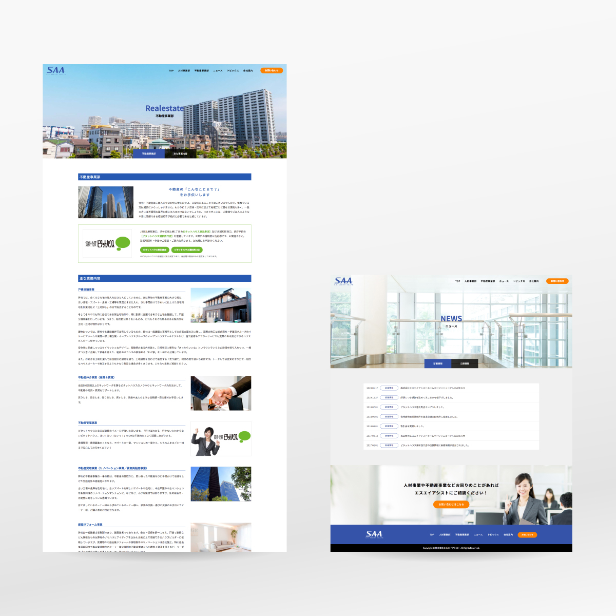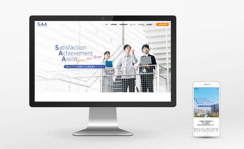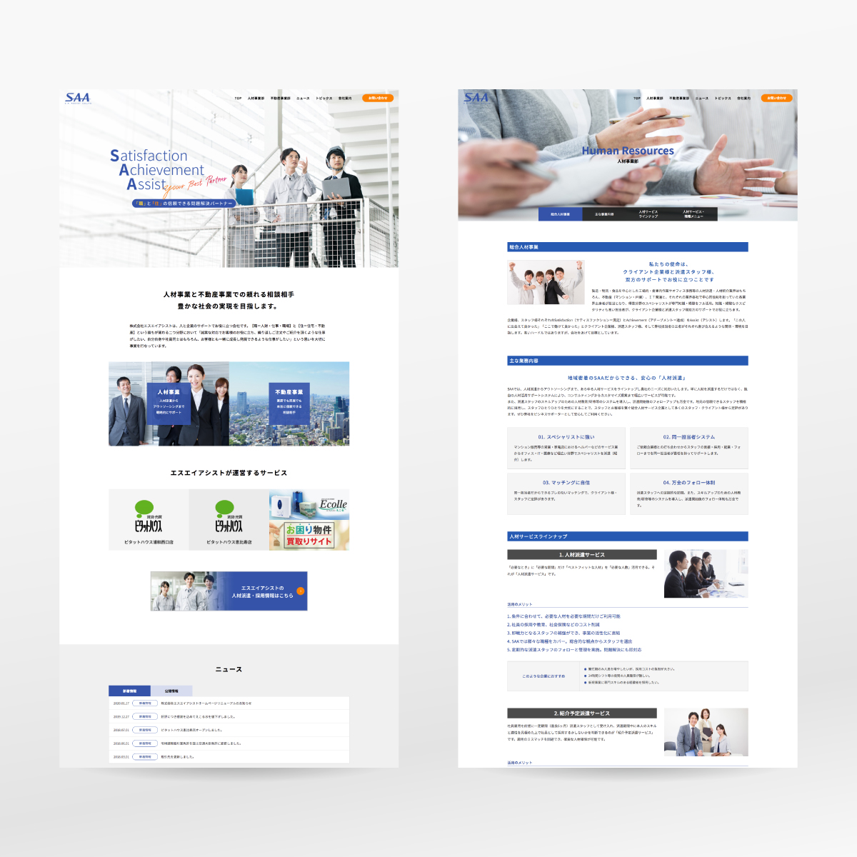 人材派遣と不動産事業の運営をしている会社のコーポレートサイトを手がけました。最初のヒアリングでの社長との面談でひしひしと伝わってきたのが人間味を大切にした事業展開を行なっていること。様々な利害関係者が見るコーポレートサイトとして、人間が真摯に行なっている様を感じられるデザインにしています。