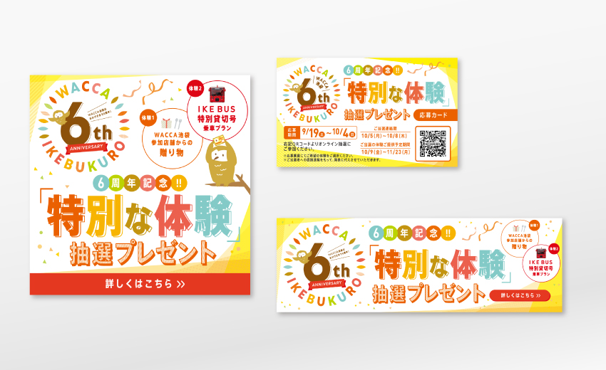 地元・池袋にある商業ビルのアニバーサリーフェアツールのデザインを手がけました。毎回フェアデザインをご依頼いただく中で大切にしているのは温かみのあるスタイリッシュさ。世の中にセンスの良いショップが増えたからこそ、その店らしいオリジナリティある表現がますます重要となります。