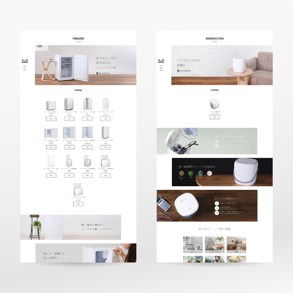 「シンプルな暮らし」をモットーとする家電メーカー様のWebサイトリニューアルを手がけました。高品質でありながら、無駄を削ぎ落とすことで低価格を実現しているメーカーの姿勢と期待感をスタイリッシュな画像をメインに表現。ビジュアル制作としての撮影まで携わることのできた、印象強い案件です。