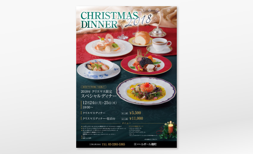 昨年に引き続き、東京都心のシティホテルにおけるパンフレット、ポスター、看板、フライヤーなどを手がけています。見せ方にこだわった撮影とデザイン力の双方から高い評価をいただき、季刊誌を始めとして、看板、ポスター、チラシ、メニュー、POPなどあらゆるツールを制作。時間をかけたトーン&マナー形成に尽力しています。