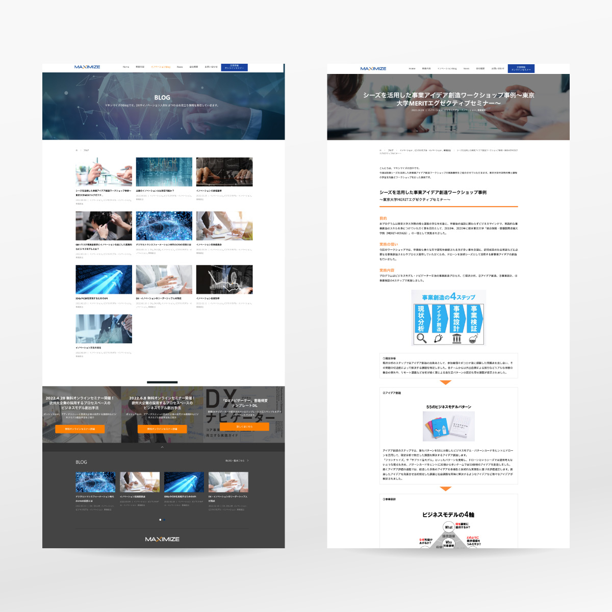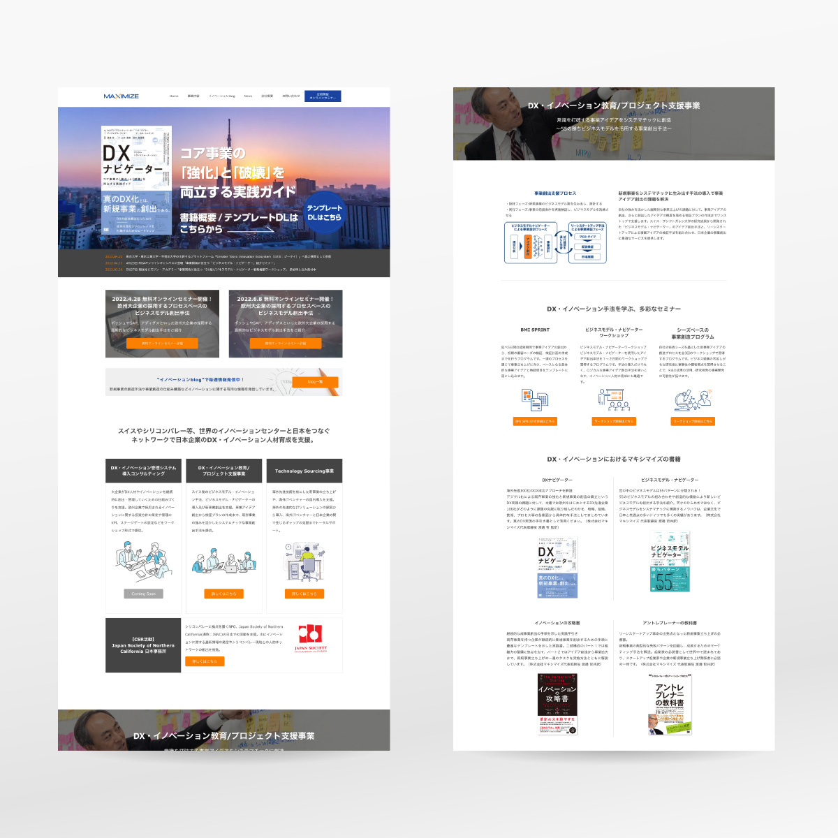 DX・イノベーション人材を育成する研修プログラムを行う会社のWebサイトを制作しました。独自のコンサルティング手法やIT開発など多岐に渡る事業内容をビジネストーンでスタイリッシュにレイアウト。SEOを意識した構成で、WordPressを活用することでblogやコラムも更新しやすい構築を心がけました。
