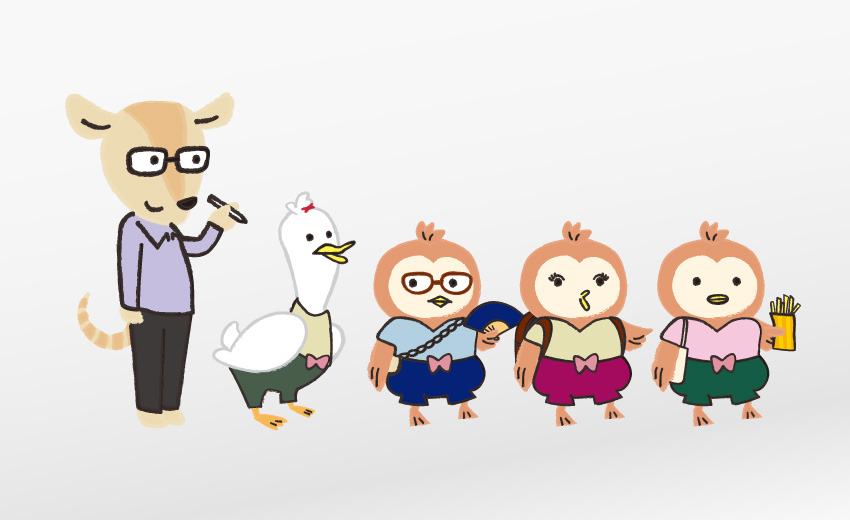 弊社ワッカデザインのキャラクターを制作しました。かなり以前よりイメージはあったのですが、なかなか実現できずtwitterアカウント開設を機に本腰入れて制作。当初は「わっかさん」だけの予定が「ふくろうs」と「あひるちゃん」もついてきて、デザイン制作会社の1コマを賑やかに彩ってくれています。