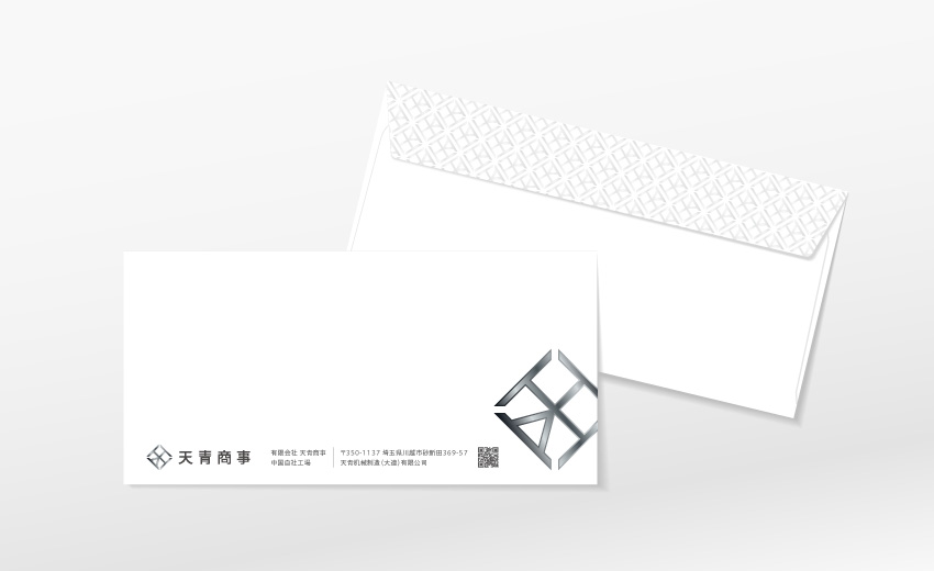 埼玉県川越市に本拠地を置く製造業のロゴデザインを手がけました。社名の漢字をモチーフに形作りつつ、製造している製品の質感や形を取り入れてロゴマーク化した案が採用されました。その後名刺や封筒にも展開、マークをグレイッシュな文様にするなどクールな世界観に仕上がっています。
