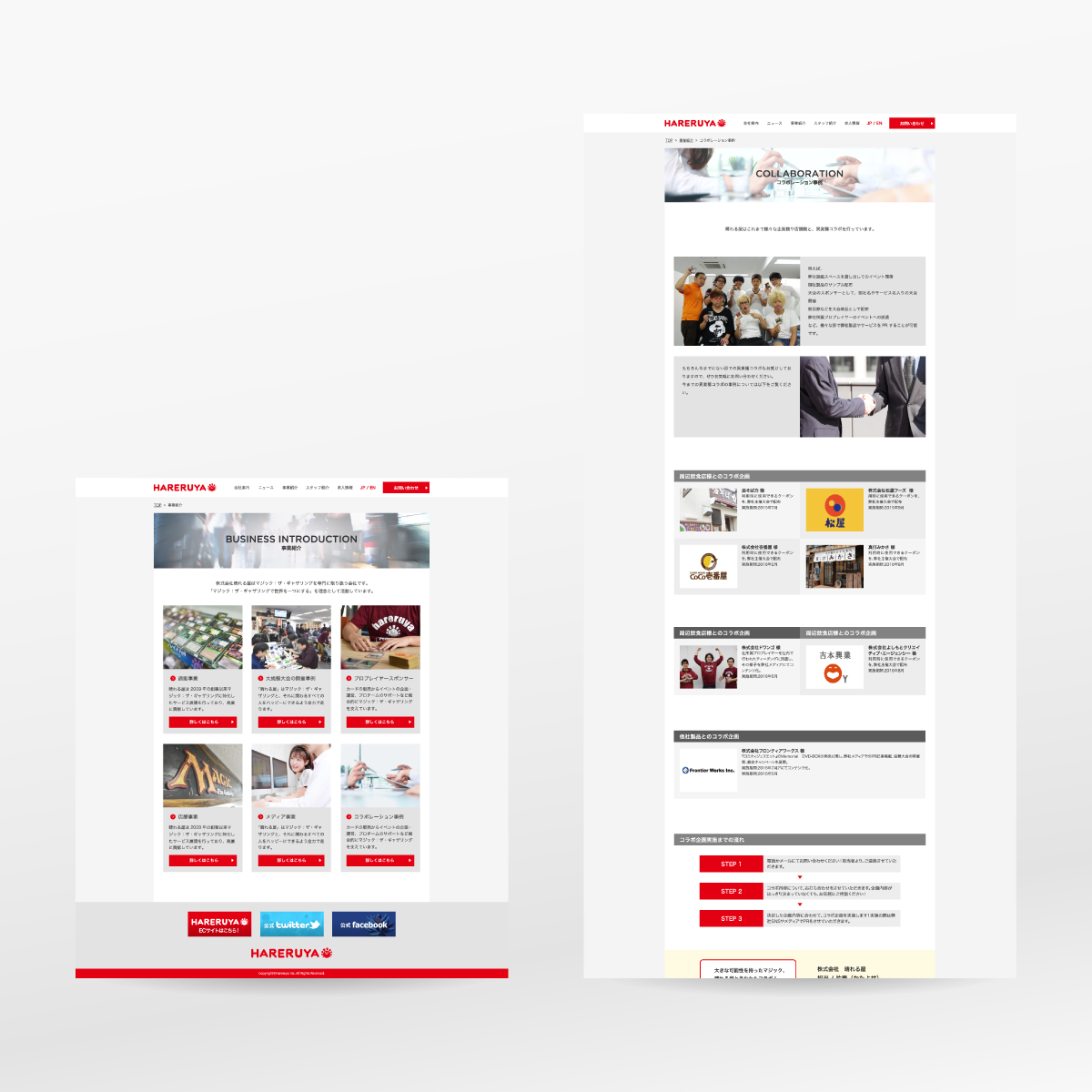 トレーディングカードゲームの販売や店舗運営、大会運営、プロプレイヤー輩出など幅広く業界を支える会社のコーポレートサイト制作を担当。扱うものは「ゲーム」であっても、業界の発展のために事業を営む姿を出来る限り真摯に伝えられるよう苦心しました。撮影から一貫して行い、総合的な表現に関わることができました。
