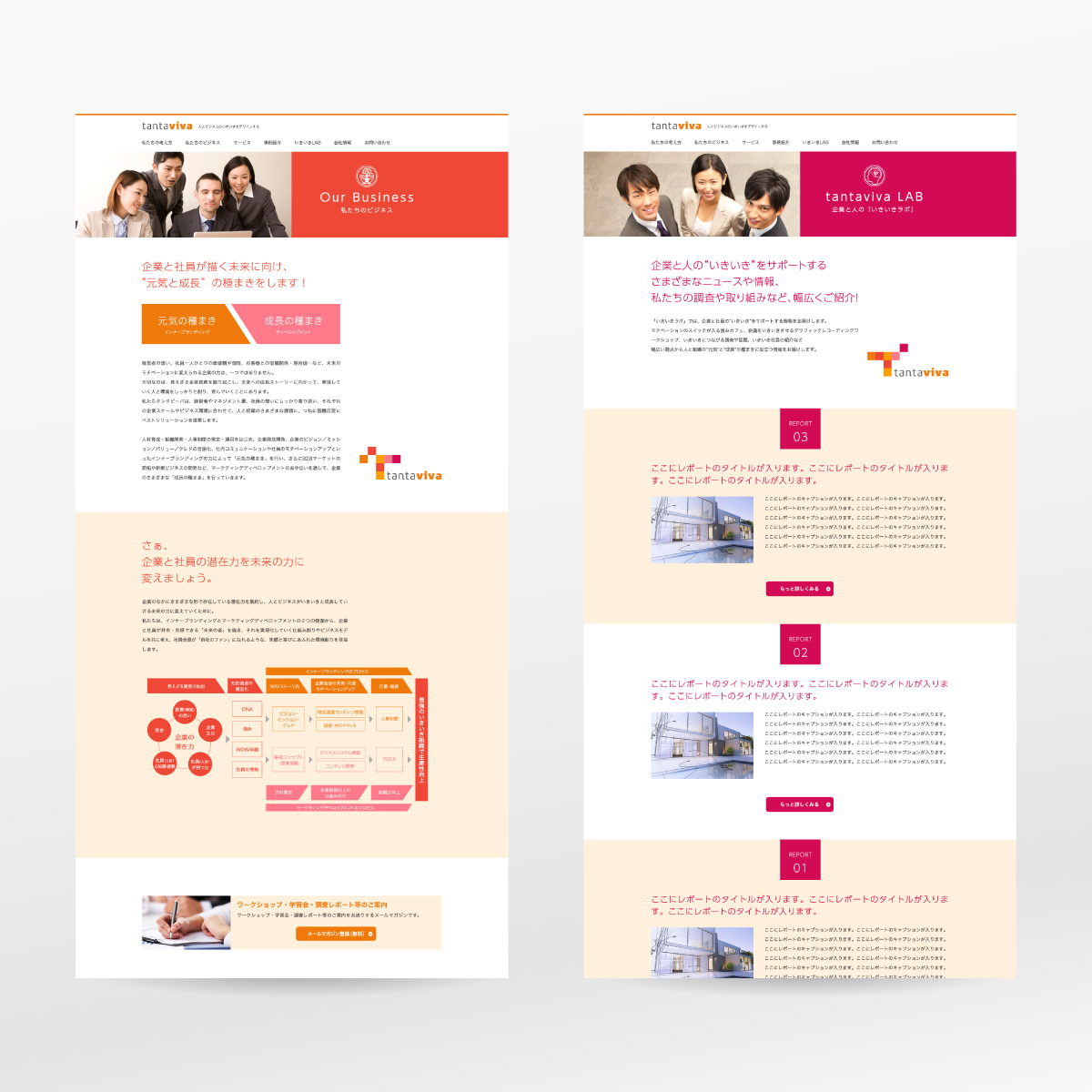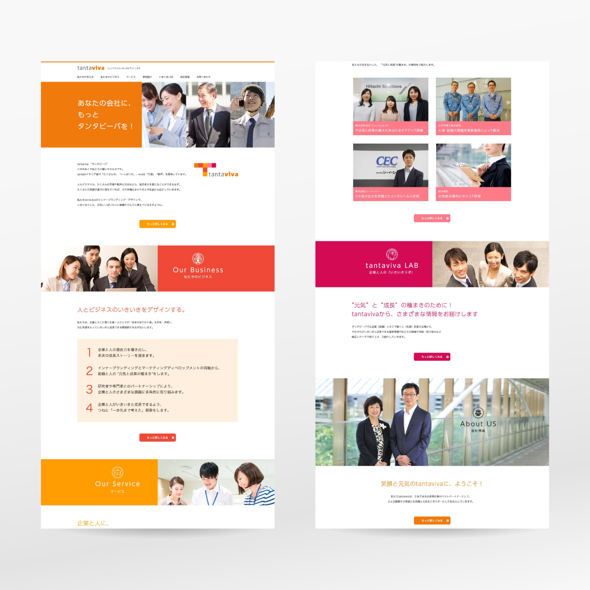 「人とビジネスのいきいきをデザインする」をキャッチコピーとした、インターナルブランディングを得意とする会社のコーポレートサイトを制作。ビジネスシーンにおける「いきいき」をどう表現するかは意外と難しく、ベースデザインが定まるまで何度も議論を重ねています。事例やラボ、ニュースなど動的コンテンツも多く搭載。作り込んだサイトに仕上がっています。