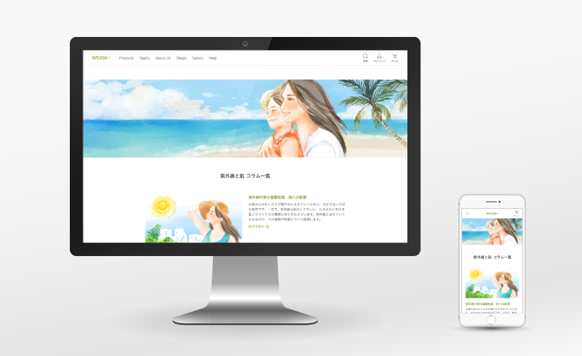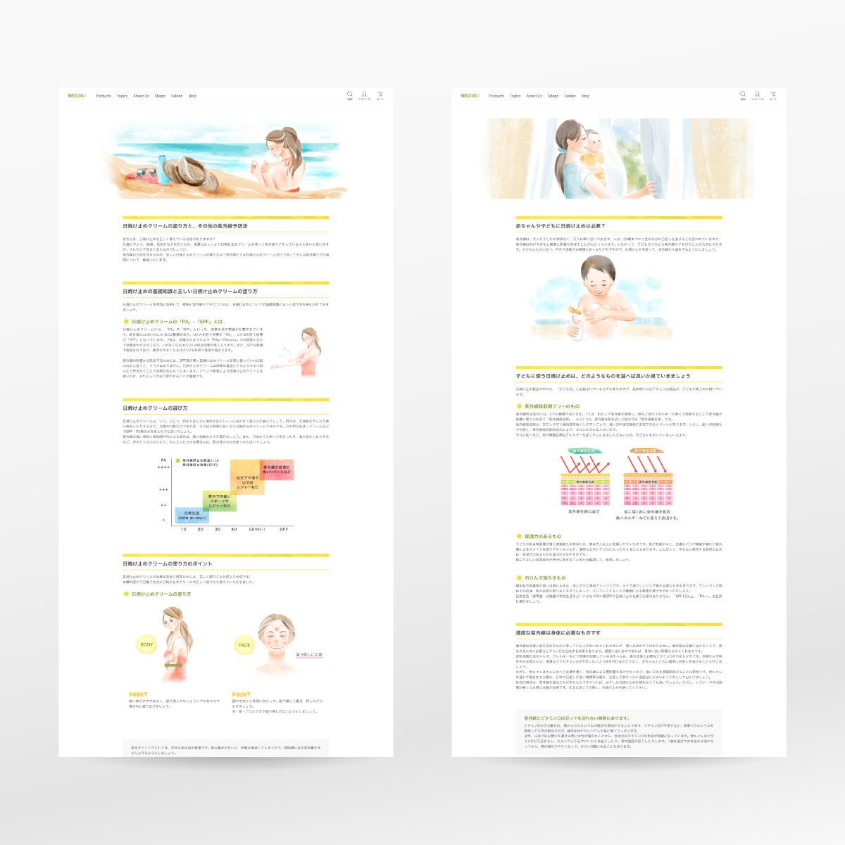 外資系化粧品メーカーのコラムページを手がけました。本国のマーケティングに沿ったものと、より日本人向けにイラストを活用したものと2案提示したところ、イラスト使用案を採用いただきました。BtoC案件のため、いつも以上にレスポンシブに気を遣いながら、コーディングまで社内で行いました。