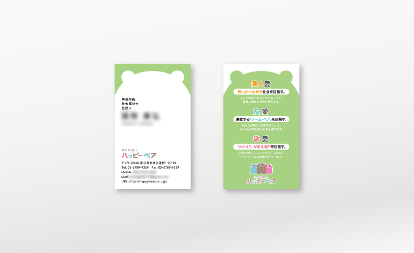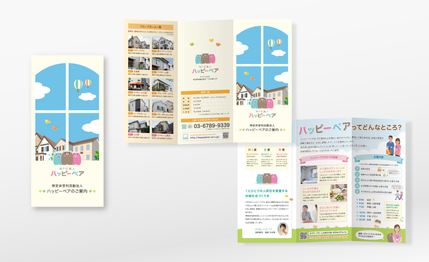 東京都内のNPO法人のCIデザイン、名刺、リーフレット、Webサイトに携わりました。障害福祉サービスの生活支援として10寮展開するに至っており、一度きちんとした見せ方を定めたいというご依頼で、何度も議論を重ねて制作。彼らの人間味としっかりしたサービス展開の両方を伝えることができるデザインを心がけています。