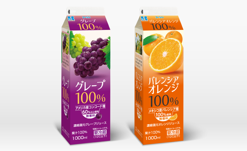飲料メーカーの果汁100%ジュースのパッケージデザイン2種を手がけました。初回に行った様々な切り口でデザイン提案の中から選ばれたのがストレートにジュースの持つシズル感を表現したものでした。書体もオリジナルで開発したりと細部までこだわっているため、実物を見た時は感動もひとしお。今後も様々な飲料パッケージを手がけていきたいですね。