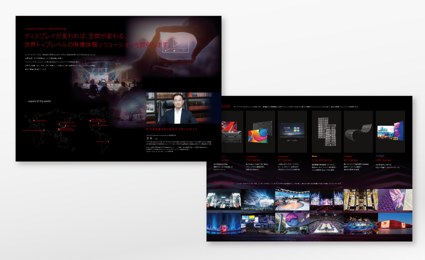 特に最初からブランディングと銘打ってはいなくても、1つ1つのツールを制作していくうちに気付いてみればブランディングが完成していた、というのはワッカデザインではよくあるケース。この外資系ディスプレイメーカーのトータルデザインは1年も経たずして一通りのツールに至ることができました。