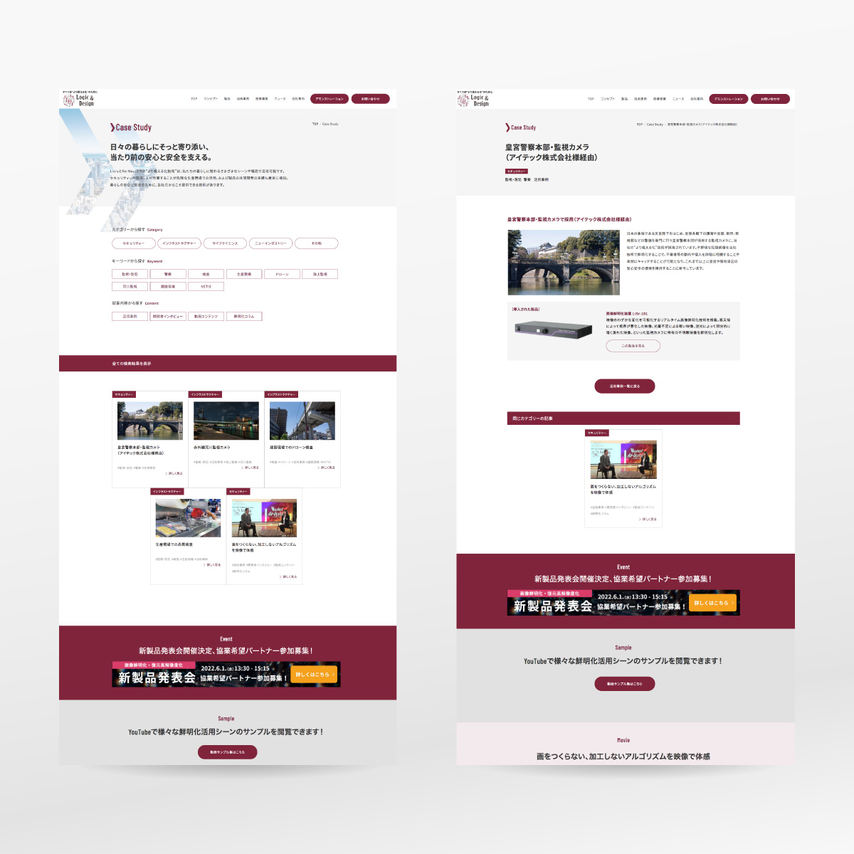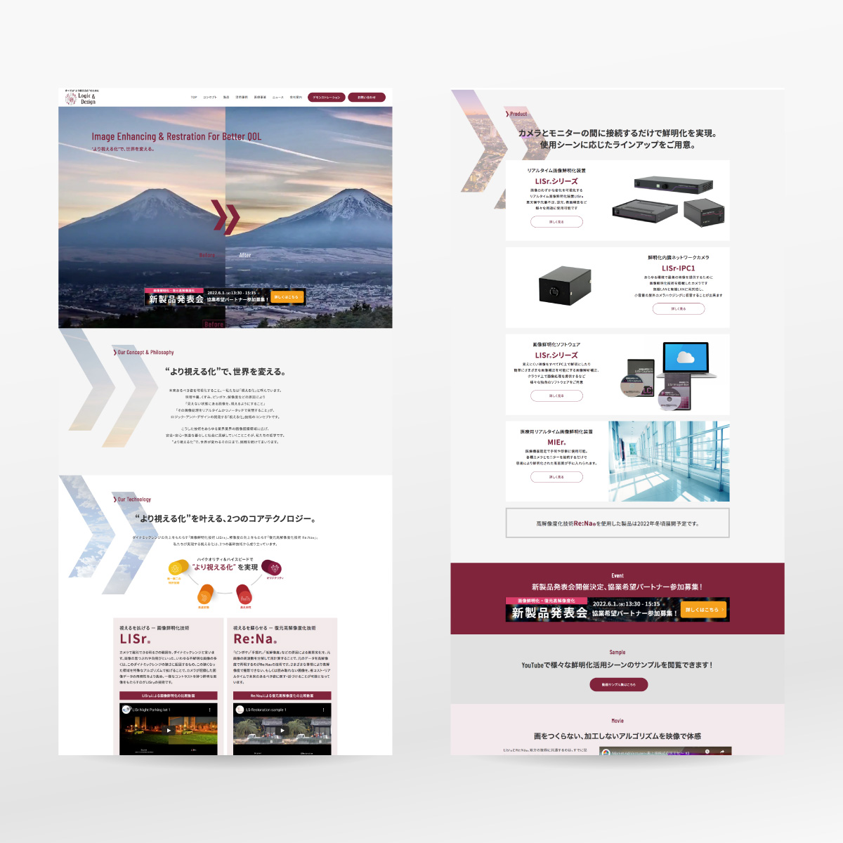 アルゴリズム開発/関連機器&ソフト・システム開発販売する会社のWebサイトを制作。元々スタートアップだった事業を広く展開させるためのリブランディングとしてのWebサイトリニューアルで、パンフレットと共にキービジュアル制作、トーン&マナーの策定から行うことで、複合的なデザイン展開を実現しています。