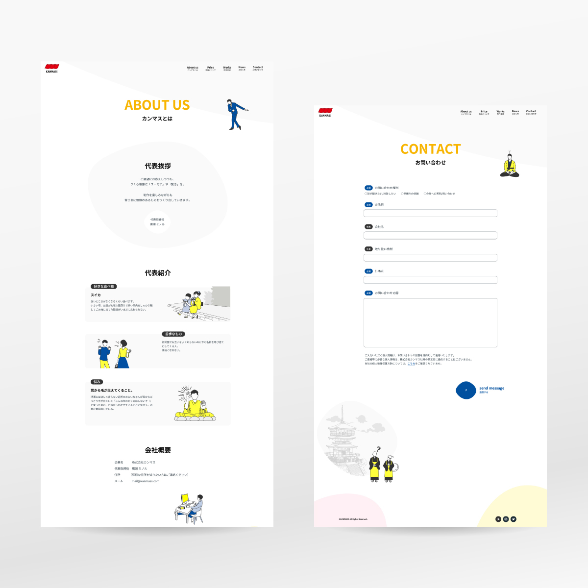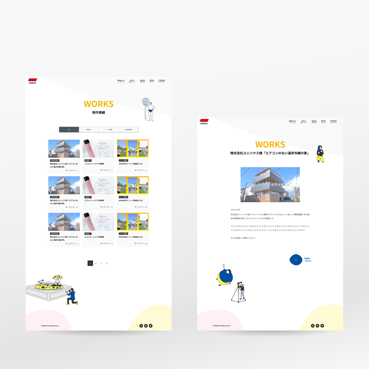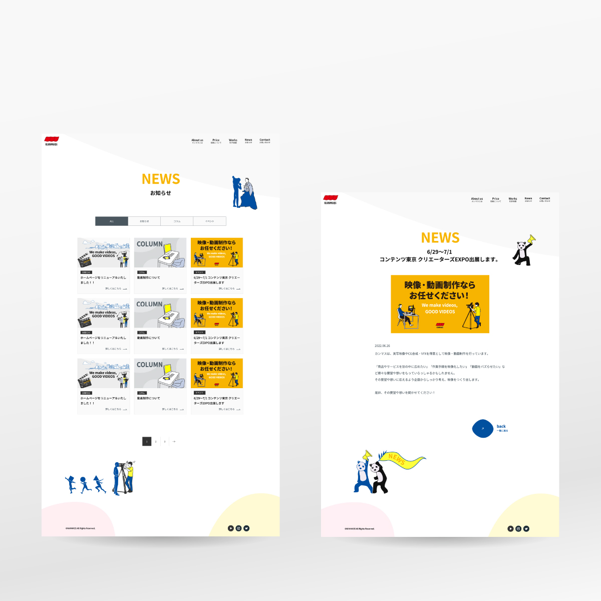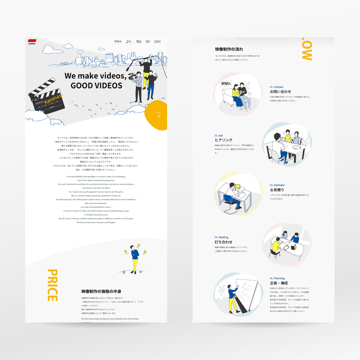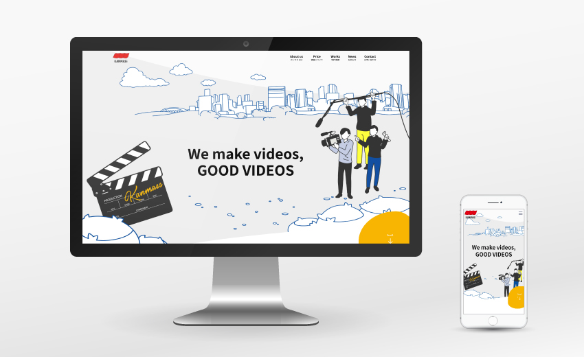 企業向けの映像制作を生業とする会社のコーポレートサイトを手掛けました。プロモーション動画やトリック動画などの期待感をイラストで表現するデザインで全体をまとめており、担当デザイナーが都度必要なイラスト制作も行なっています。同時に展示会出展もあったため、紙の会社案内や展示会パネルにも展開。思いがけずトータルデザインの案件となりました。