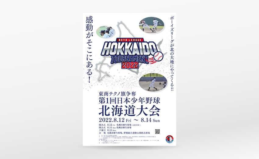 ワッカデザインとしては珍しい案件ですが、ボーイズリーグの大会ロゴデザインを手掛けました。「カッコよく!」以外に特段要望がなかったため、どういうロゴなら自分も球場に足を運んで観に行きたくなるかイメージしてデザイン。気に入ってもらえたようで、ポスターとTシャツにも展開しています。