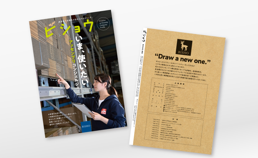 かねてより様々なツール、デザイン制作を行っている、加工・アッセンブリ・梱包発送会社の会社案内をリニューアルしました。細やかなサービス展開をわかりやすく伝えるために記事の体裁であしらった雑誌テイストのデザインのため、モデルを使った撮影も実施。これまで培った明るくPOPなトーンを活かしながら、新たな印象を与える会社案内となりました。