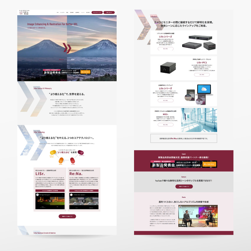 アルゴリズム開発/関連機器&ソフト・システム開発販売する会社の会社案内、Webサイト制作を皮切りに全製品のカタログ制作など周辺ツールに至るまで1年かけてフルリニューアル。トーン&マナーの振り幅やビジュアルの策定なども含め、ワッカデザインがこれまで培ったBtoBブランディングのノウハウを注ぎ込んだまとまりになっています。