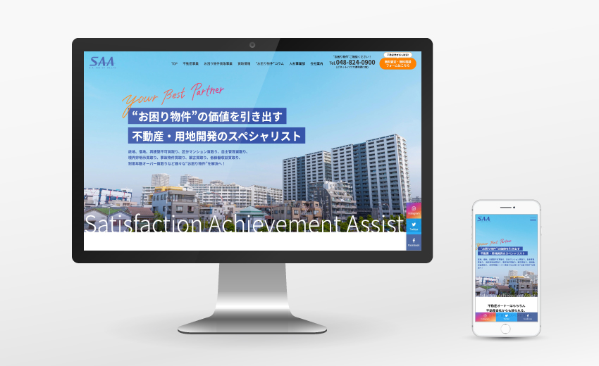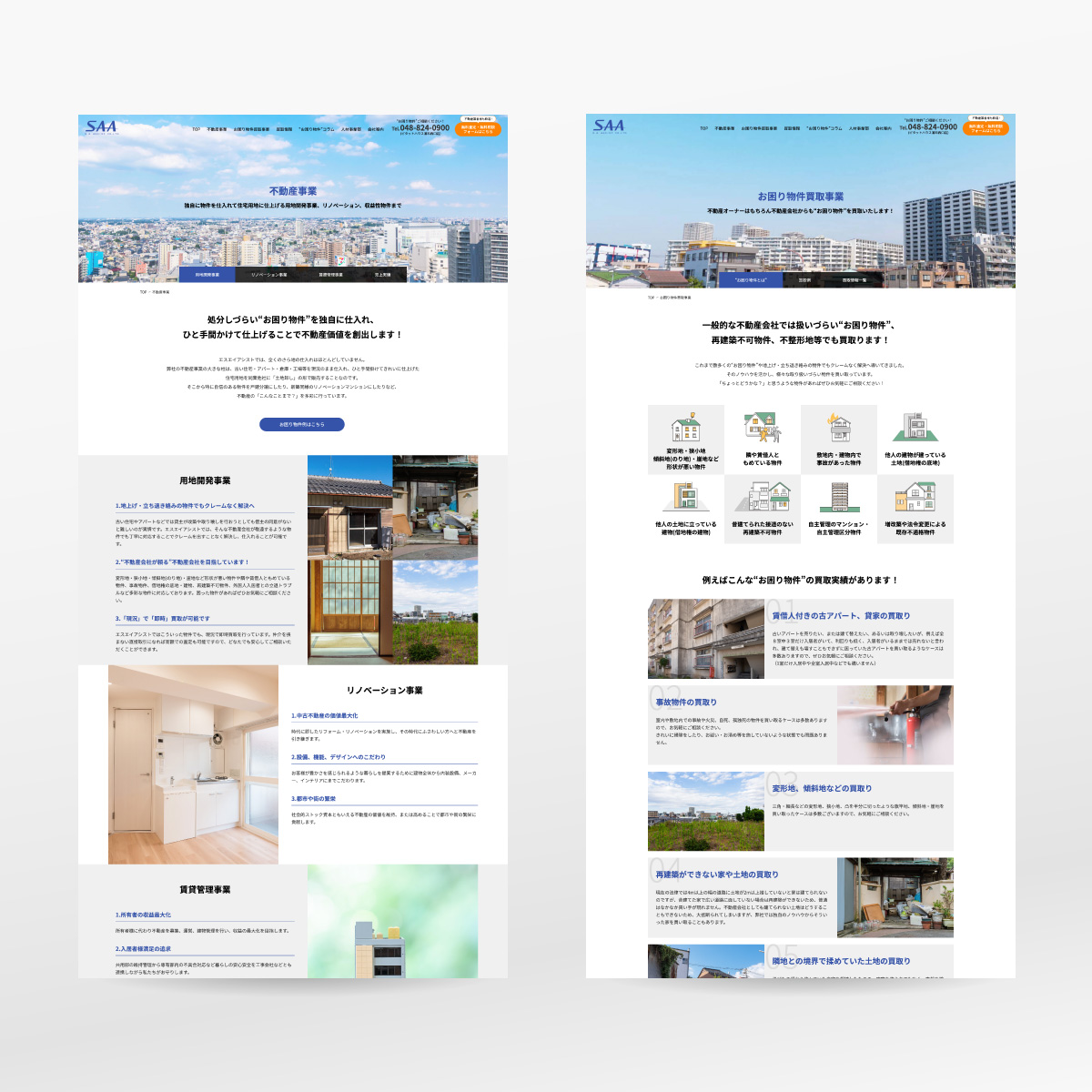 さいたま市を拠点にしている不動産会社のWebサイトを制作しました。一般的には流通しづらい「お困り物件」をWeb集客の手法で集められないか?とのご相談をいただき、公開後のコンテンツSEOを鑑みた構築でデザイン。実際の運用では毎月のSEOコンサルティングとSEO記事作成も行うことで、Web制作だけでなく事業育成をサポートしています。