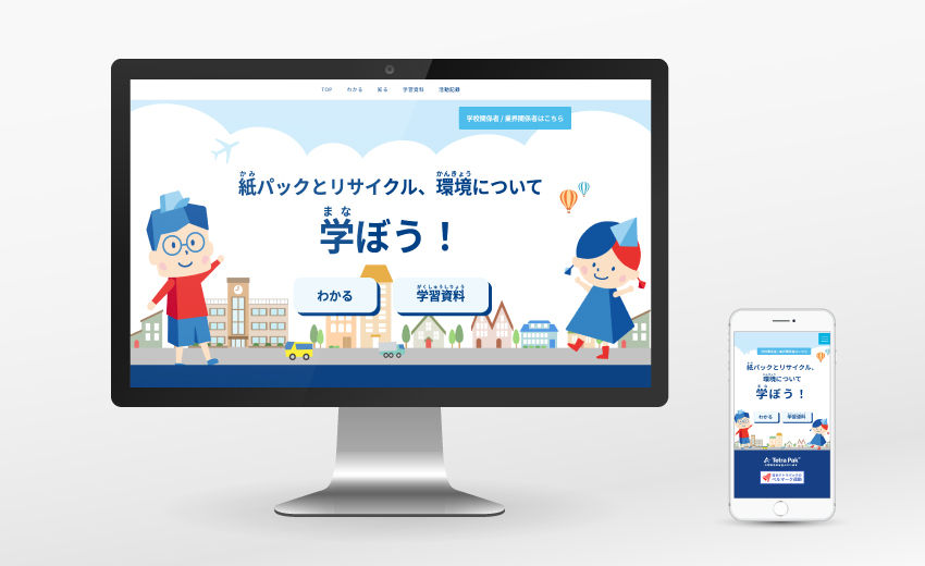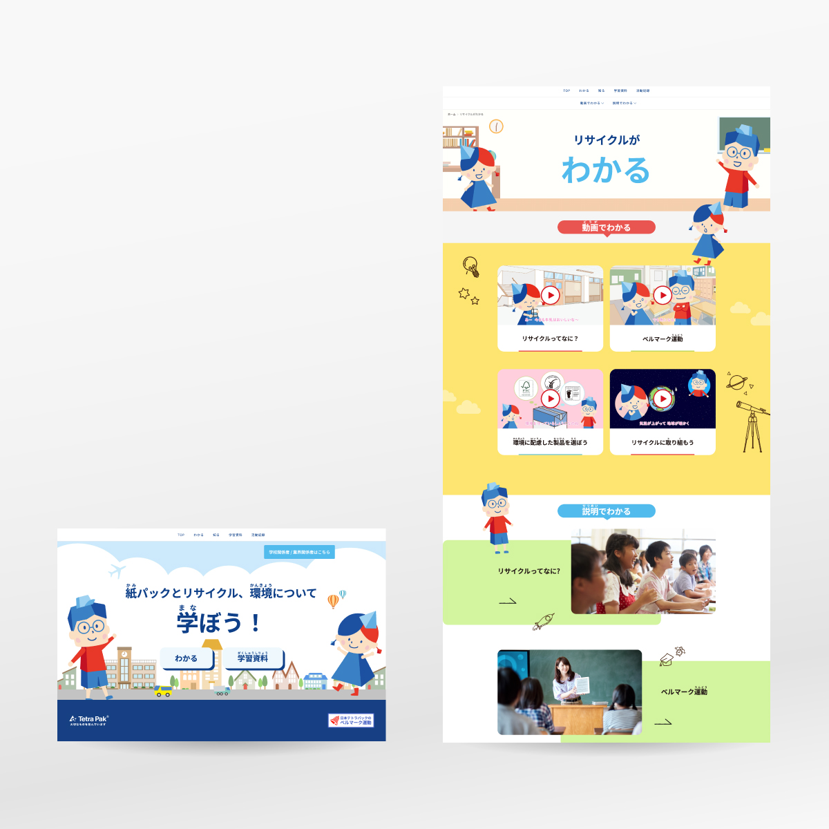 食品・飲料における容器包装メーカーの特設サイトを制作しました。SDGs教育など事業と直接関係ある部分に対し、子どもたちの学習に役立つサイトとしてコンテンツを構成。小学校ではタブレットも日常的に使われることから、タブレット最適化も図ったWebサイトとなります。