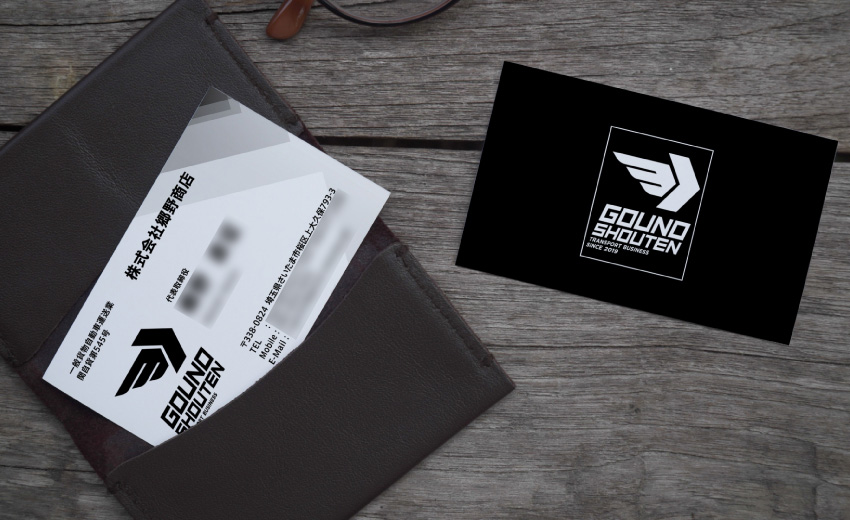 運送業で独立開業した会社のロゴデザインを手掛けました。いくつか提案した中から選ばれたのは運送に翼を授かるようなデザインのもの。ロゴだけでなく、名刺、各種封筒、Tシャツにも展開しました。