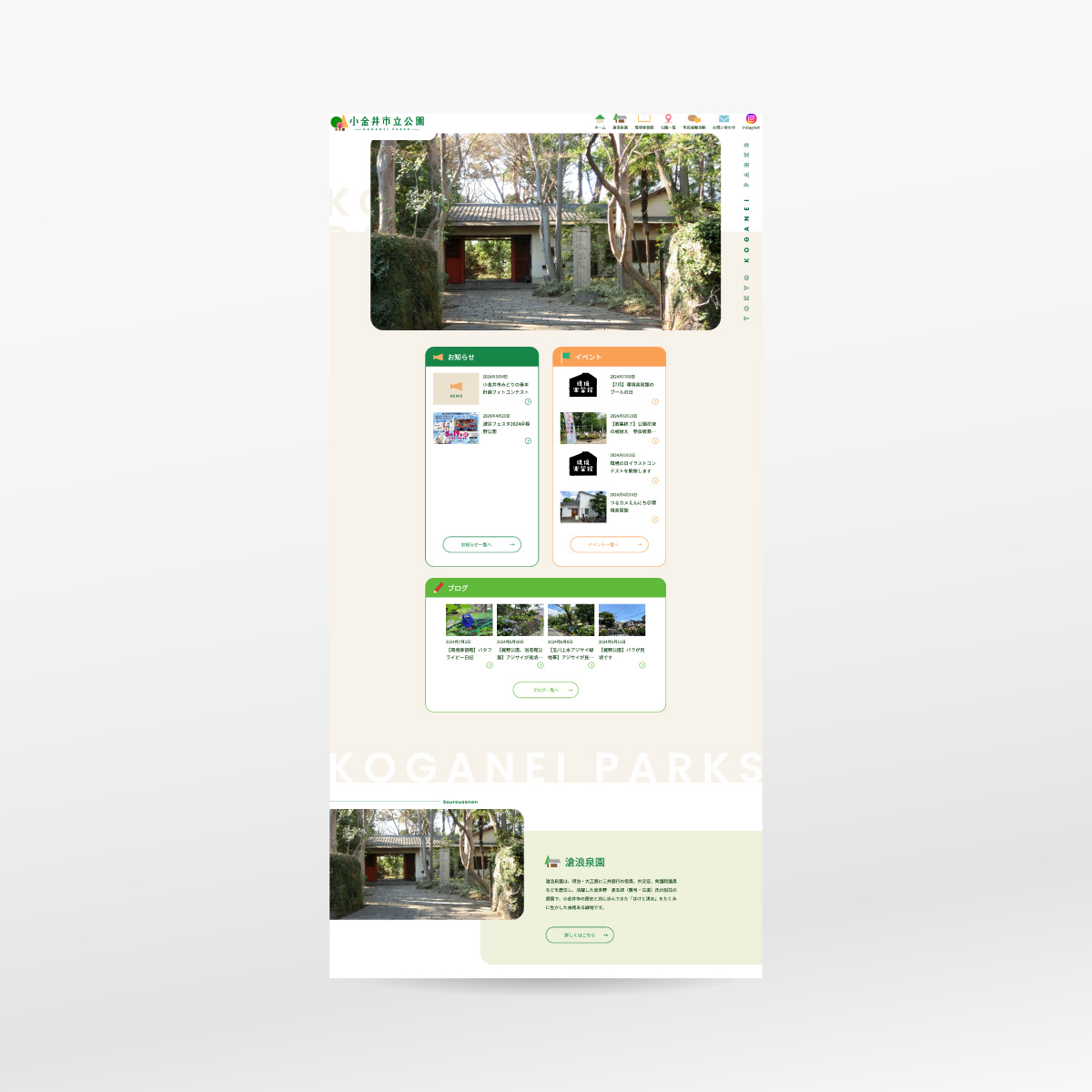 公共の公園のWebサイトを手掛けました。イベントやお知らせなどの発信機能を重視しつつ、市内に点在する200弱もの公園の情報を整理して構築。老若男女受け入れやすい見た目に優しいデザインをここがけています。