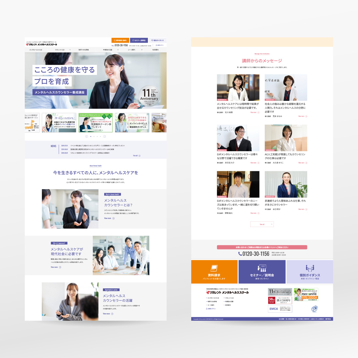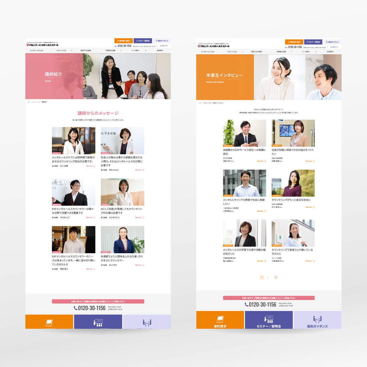 キャリアアップを図る社会人のためのスクール会社の講座サイトを制作しました。以前リニューアルを手がけた講座パンフレットを元にWebサイトを全面リニューアルするプロジェクトで、大人向けの丁寧なトーン&マナーと生き生きした受講生イメージを醸成するデザインに仕上げています。