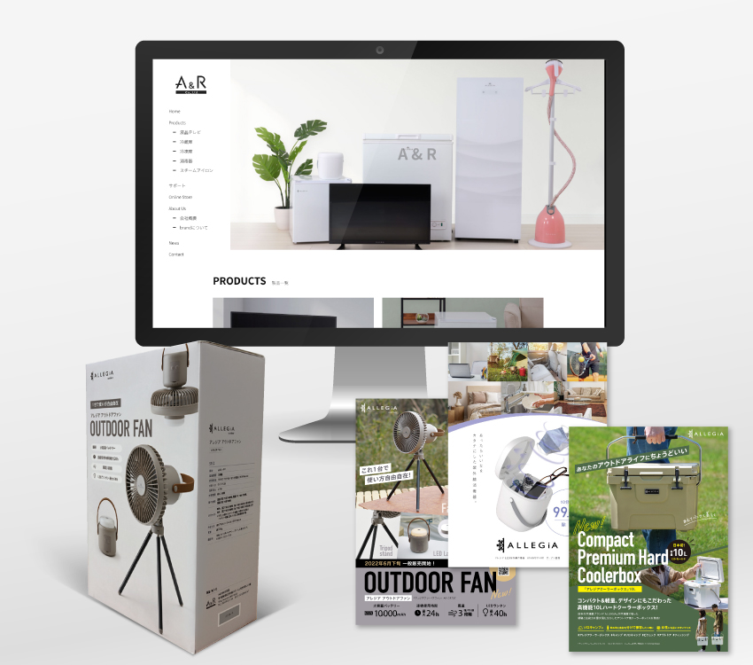 製品周りのツールからビジュアル撮影、Webサイト制作、販促ツール、プロダクト周りの制作に至るまで、年間通じてトータルサポートしています。特に製品撮影は背景や小物のコーディネート、配置の作り込みまでデザイナー自身が担当。お客様とカメラマンも交えてチーム感のある制作体制で訴求力のあるビジュアル制作をおこなっています。