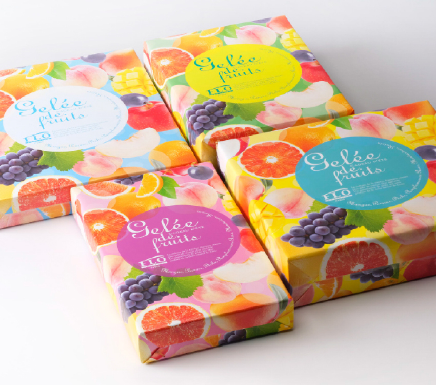 夏のお中元シーズンに向けたゼリーギフト商品のパッケージデザインを手がけました。ショッピングモールなどを中心に全国展開しているスイーツショップのため、ちょっとしたデザインの違いが売り上げに大きく影響するということもあり、並べた時の印象や細かな色味は細心の注意を払って制作しています。